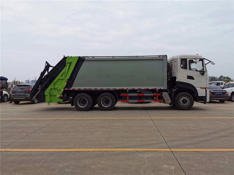 上裝配置:廂體圓弧設(shè)計(jì)(增強(qiáng)廂體承受力),Q345錳鋼板(高強(qiáng)度耐磨抗壓材質(zhì),罐體試用壽命更長(zhǎng)),前后雙向壓縮,推鏟卸料,長(zhǎng)源液壓泵,中梅多路換向閥,維森博樂(lè)油缸,高耐壓液壓油管,西門(mén)子PLC一鍵系統(tǒng)(駕駛室內(nèi)外均可操作),移動(dòng)遙控器箱體操作,雙污水箱(前后各一個(gè)),邊燈,高位示廓燈,夜間作業(yè)燈。